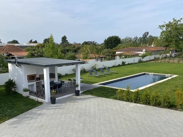 Beyond the comfort of the interiors, Casa Fonte Nova’s verdant grounds unfold into a tranquil oasis. Meticulously maintained gardens boast vegetable patches, fragrant herbs, and fruit trees, inviting guests to reconnect with nature. The crystal-clear swimming pool serves as a refreshing retreat, complemented by ample outdoor seating perfect for leisurely afternoons. Animal lovers find a welcoming space here, with pet-friendly policies and occasional sightings of friendly poultry adding a charming rustic touch.